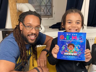 book, "G.E.M.S.: Gifted, Educated, Mindful and Successful" with the children. OJN gave gifts of the books to each child.